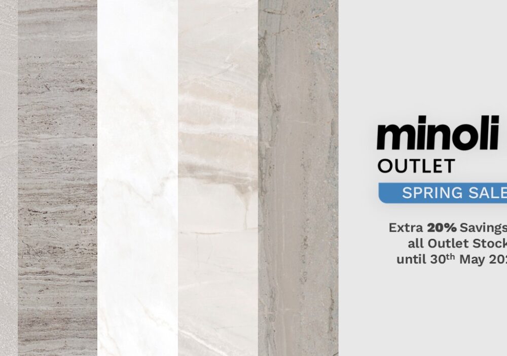 Monday 20th April - Saturday 30th May, we’re offering an extra 20% saving on all porcelain and ceramic tiles in Minoli Outlet stock.