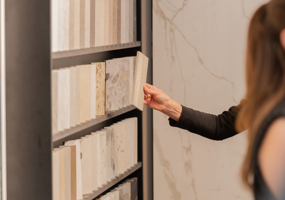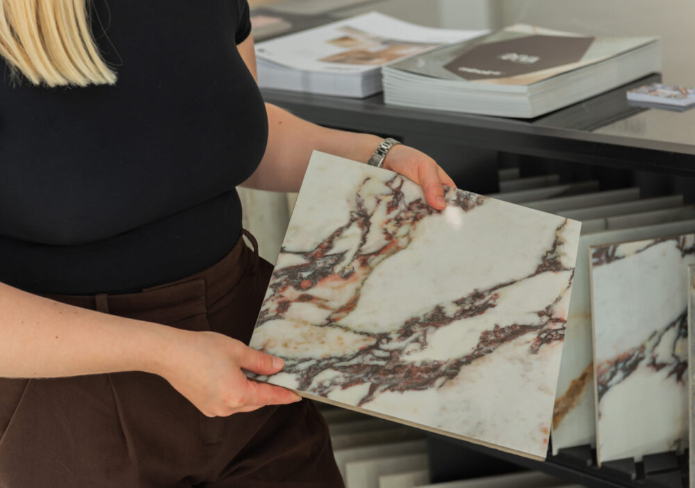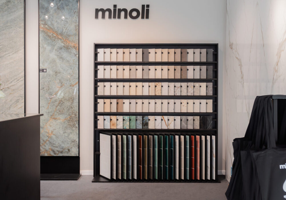 We also showcased the brilliant book match design of Marvel Calacatta Prestigio in the full-size 120/278 format. Plus, visitors explored our sustainably produced ranges with over 60% recycled content and new collections of colourful small format and brick tiles, which were all very well received at our pop-up showroom stand.