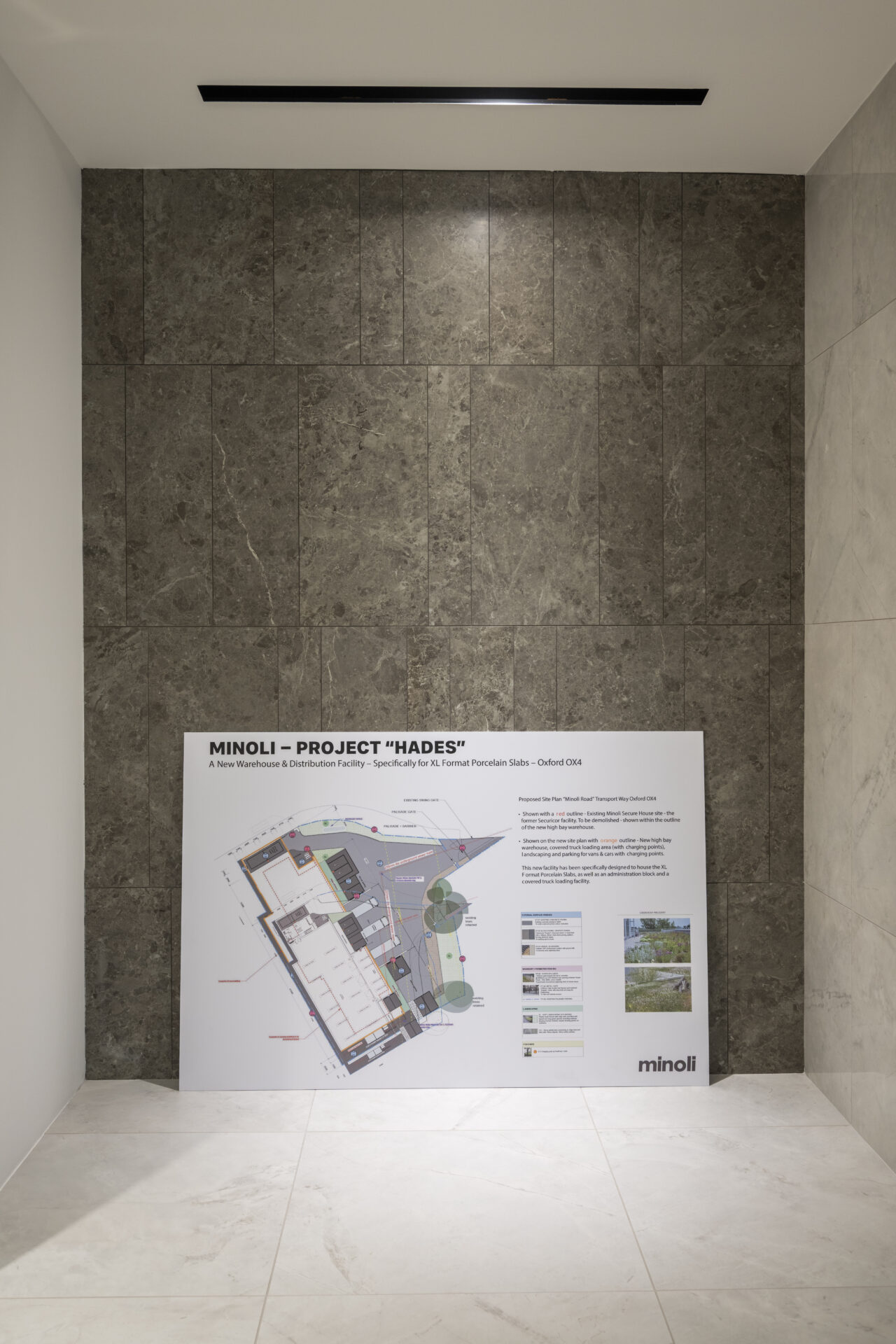 This new high-bay warehouse and administration block has been specifically designed to house the XL Format Porcelain Slabs, with a covered truck loading facility, car parking, administration & showroom space and staff facilities.