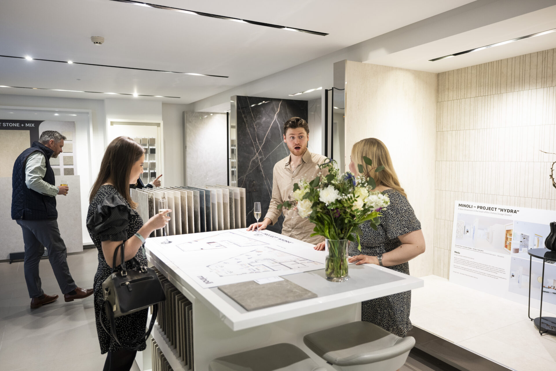 On the evening of Saturday 28th February, Jonathon and Lucy Minoli took the opportunity to offer a preview of the design direction for the new Chelsea flagship showroom with senior Minoli team members, together with a number of clients, friends of Minoli, as well as to key contributing suppliers.