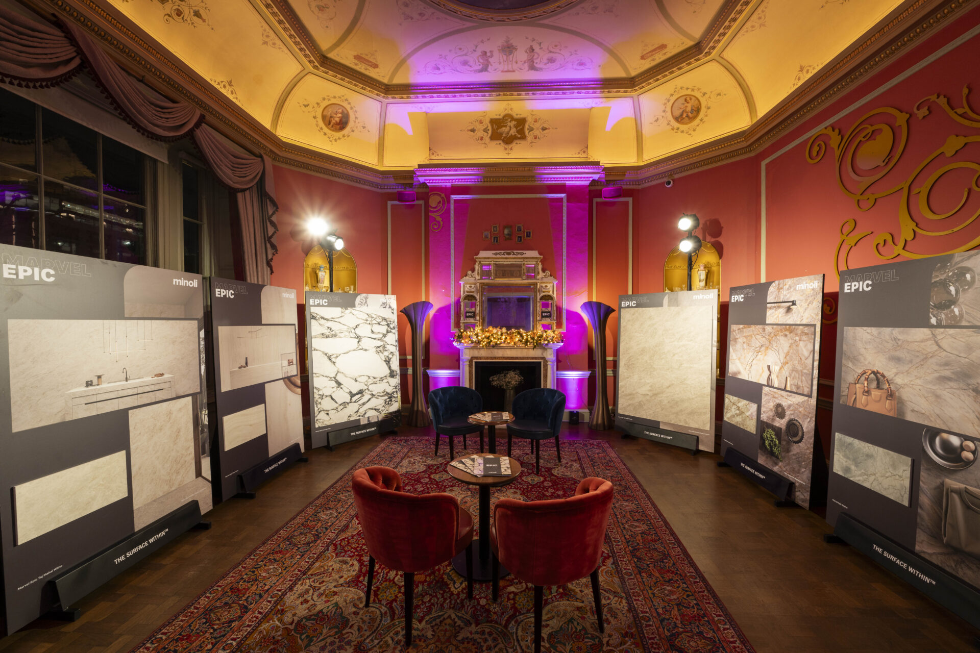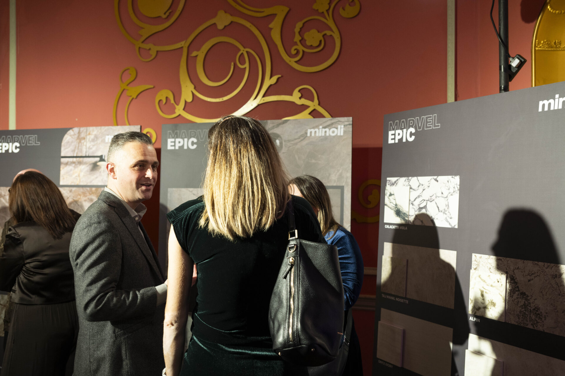 The headline launch range was the new Minoli Marvel Epic Series, a collection that revolutionises the concept of porcelain stoneware surfaces, not just delivering authentic marble-effect finishes, but creating epic scenes that transform spaces into visual experiences.