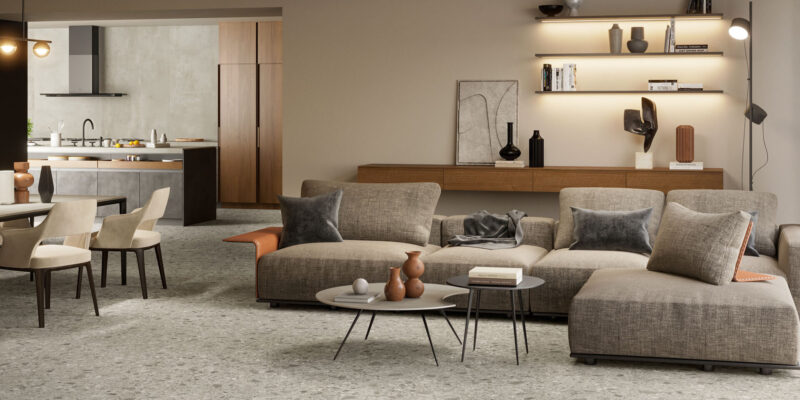 Whether a fully open plan design or a more considered approach to zoning in living areas is preferred, porcelain tiles can be used in various ways to achieve either goal.