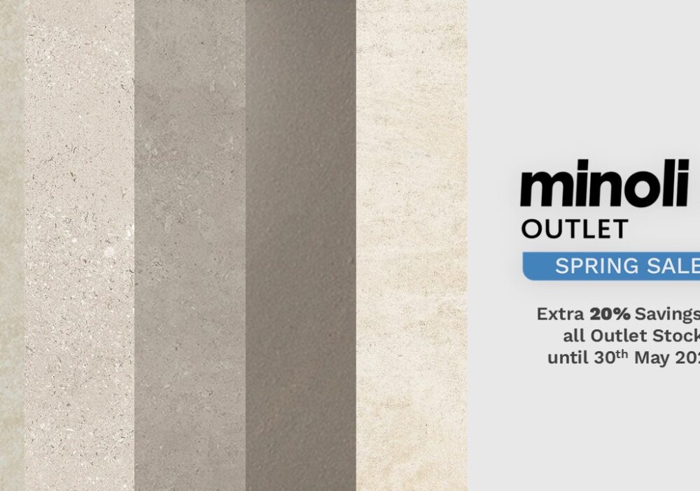 Monday 20th April - Saturday 30th May, we’re offering an extra 20% saving on all porcelain and ceramic tiles in Minoli Outlet stock.